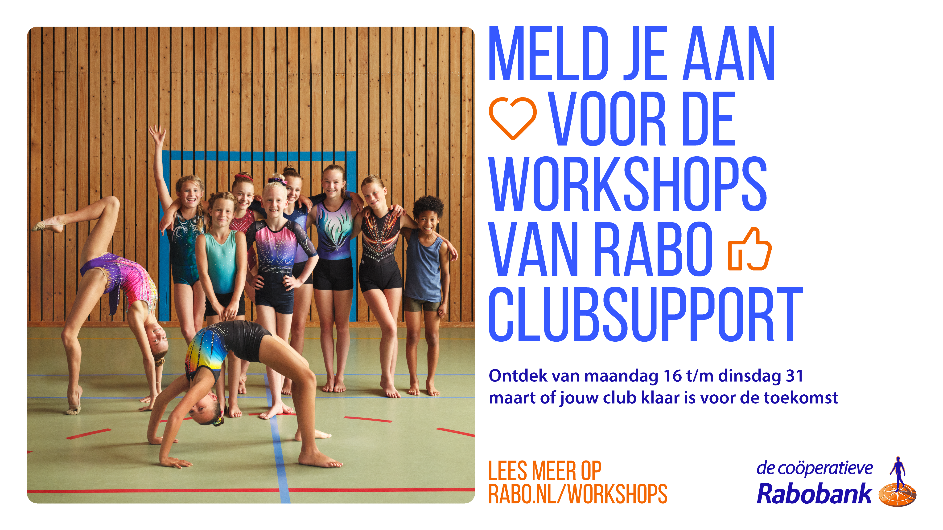 Rabobank nodigt je graag uit voor de inspirerende online workshops van Rabo ClubSupport. Sport- en cultuurverenigingen en -stichtingen staan voor vergelijkbare uitdagingen. Daarom organiseert Rabobank van maandag 16 maart tot en met dinsdag 31 maart maar liefst 37 online workshops over actuele thema’s zoals financieel beleid, vrijwilligersmanagement en ledenbinding.